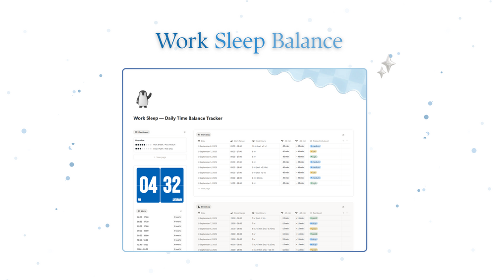 Ready to start? Get Notion Work Sleep Balance today and use it your way — whether it’s for tracking hours, improving rest, or simply keeping life more balanced.